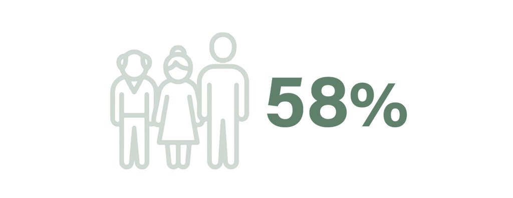 2025년 기준, 18~24세 성인의 58%가 부모와 함께 거주하고 있다.