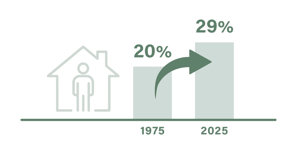 가구 구조는 작아지고, 가구를 이끄는 연령대는 높아졌다. 2025년에는 3,970만 가구가 1인 가구로, 전체 가구의 약 3분의 1에 가까운 비중을 차지한다.
