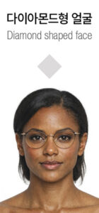 - 다이아몬드형 얼굴: 위쪽이 강조된 디자인이나 타원형 프레임이 잘 어울린다.
