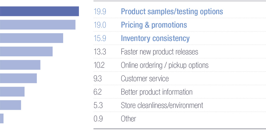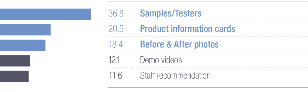 Customers preferred hands-on formats—such as samples/testers—as the most helpful type of shopping information. This was followed by product information cards, before-and-after photos, demo videos, and staff recommendations.