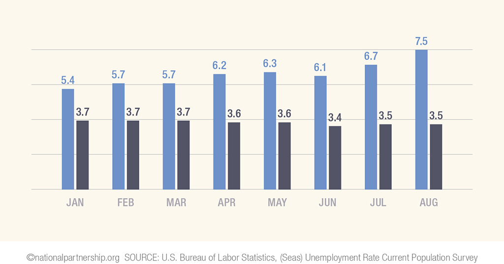 - During the same period, White women’s unemployment rate 3.4% → Black women’s rate more than double