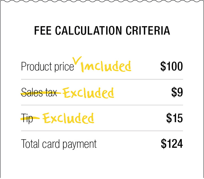 Under the new law, card issuers may calculate fees only on the price of goods and services. Sales tax and tips must be excluded.