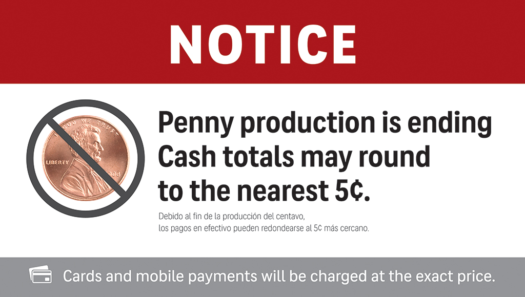 (Recommended notice: “Cash payments are rounded to the nearest five cents.”)