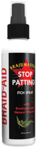 Braidmasters STOP PATTING Itch Spray This soothing and moisturizing scalp treatment is infused with eucalyptus and natural vitamins. It instantly relieves itching and discomfort caused by sweat after a workout. The convenient spray application makes it easy to use anytime, anywhere.