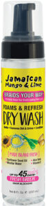 Universal Beauty Jamaican Mango & Lime Foams & Refresh Dry Wash This dry wash provides a quick and easy way to refresh your scalp and hair. It absorbs excess oil, eliminates odors, and adds shine, helping you maintain fresh, manageable braids despite sweat and humidity.