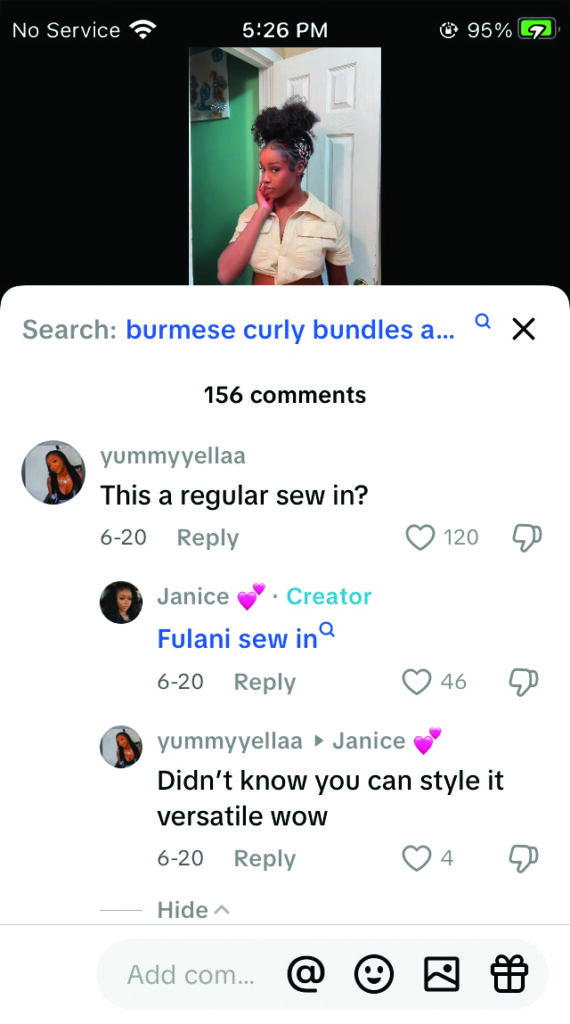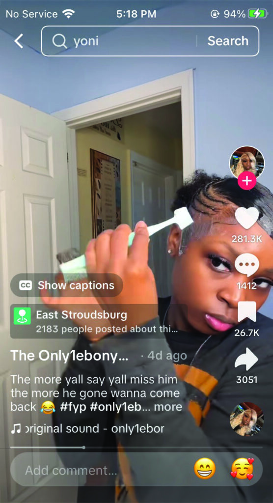 TikTok search screen example. Entering keywords like ‘Beauty Supply Haul Black Girls’ or ‘What I bought at Sally’s’ reveals content featuring products frequently purchased by users.