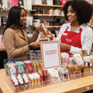 The counter is the last natural point for making a suggestion. Products highlighted here often boost sales. Explaining related items while the customer checks out feels helpful to them and creates additional sales opportunities. During year-end, place small but essential items like edge control, lip gloss, eyelash glue, hairpins, and mini oils in clear view. Training staff on suggestion phrases across the store can make the final recommendation a decisive sales driver.